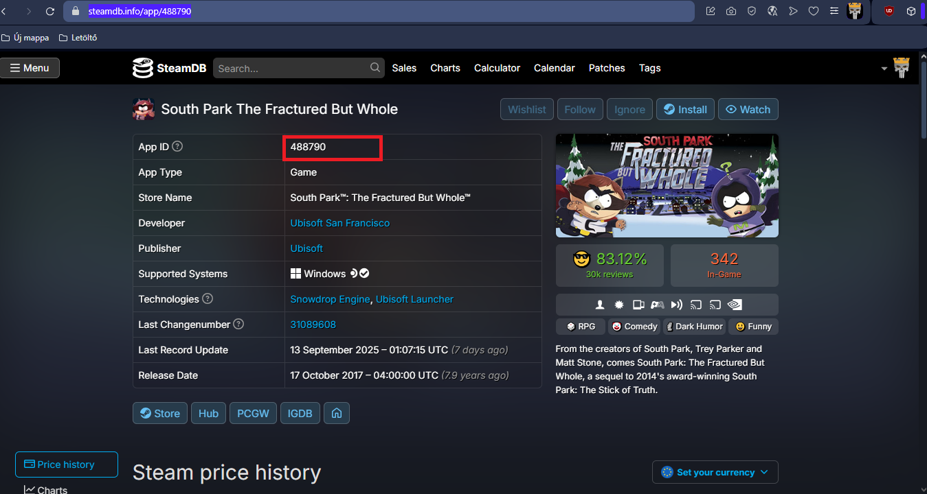 írd be a játékot keresőbe és másold ki az App ID-t!